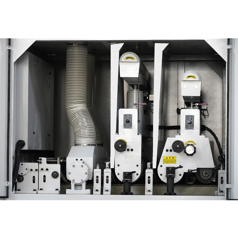 性能特點:本機床是一臺將刨削和砂光完美結(jié)合在一起的組合刨砂機,是由刨刀輥和輥式砂架、壓磨式砂架、組合在一起,進行先刨后砂具有切削量大、加工精度高和砂帶磨損低等特點。螺旋刨刀輥裝有可轉(zhuǎn)位四面刃不重磨超硬刀片。 主要適用于實木板、實木拼板的刨砂加工,也可以用于細木工板刨花板、中密度纖維板、指接板、復(fù)合材料等各種板材的厚度刨削和精細砂光。